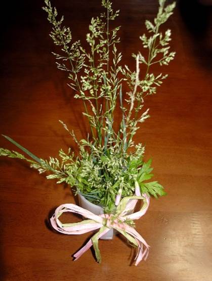 立体カード(一学期の作品) 生花を使用。 花瓶はダンボール